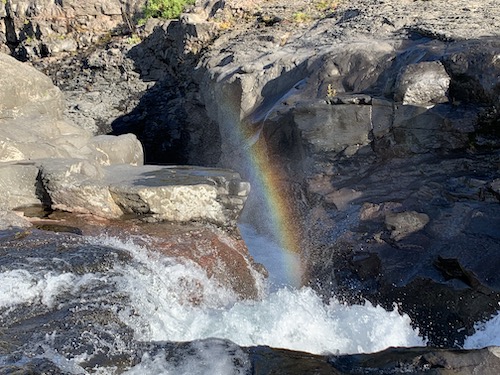 滝は日光の角度によって虹がよく見えるので楽しい。